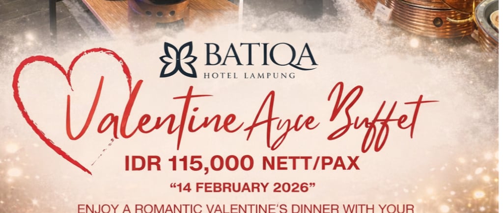 Melalui promo ini, BATIQA Hotel Lampung ingin menghadirkan pengalaman bersantap Valentine yang praktis, menyenangkan, dan tetap terjangkau, sehingga masyarakat dapat menikmati momen spesial tanpa harus khawatir soal anggaran.
