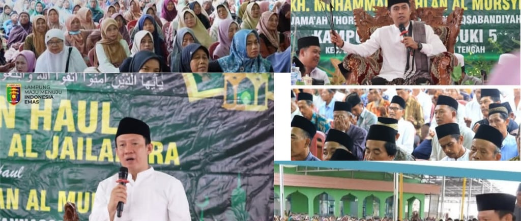Lampung Tengah — Pemerintah Provinsi Lampung menegaskan komitmennya untuk terus mendukung kegiatan keagamaan yang memperkuat nilai-nilai spiritual dan moral masyarakat. Komitmen tersebut diwujudkan melalui kehadiran Sekretaris Daerah Provinsi Lampung, Dr. Marindo Kurniawan, ST, MM, dalam peringatan Haul Syaikh Abdul Qadir Al-Jilani yang digelar di Mushola Baiturrahman, Kampung Rejo Basuki 5, Kecamatan Seputih Raman, Kabupaten Lampung Tengah, pada Minggu (12/10/2025).