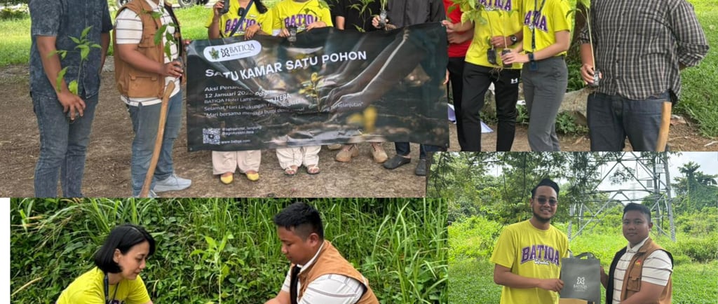 Program “Satu Kamar Satu Pohon” merupakan inisiatif BATIQA Hotel Lampung yang mengajak tamu untuk berkontribusi langsung terhadap pelestarian lingkungan. Melalui program ini, setiap tamu yang melakukan pemesanan kamar akan turut ambil bagian dalam aksi penghijauan, di mana setiap kamar yang dipesan dengan harga mulai dari Rp600.000 nett akan dikonversikan menjadi kontribusi penanaman satu pohon.